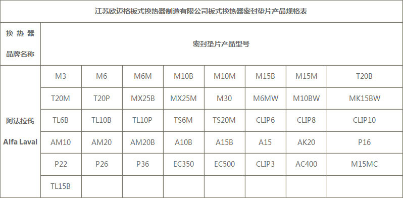 阿法拉伐國產(chǎn)板式換熱器密封墊片